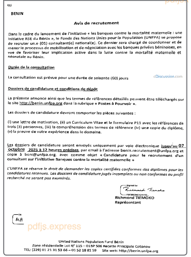 Le Fonds des Nations Unies pour la la Population (UNFRA)