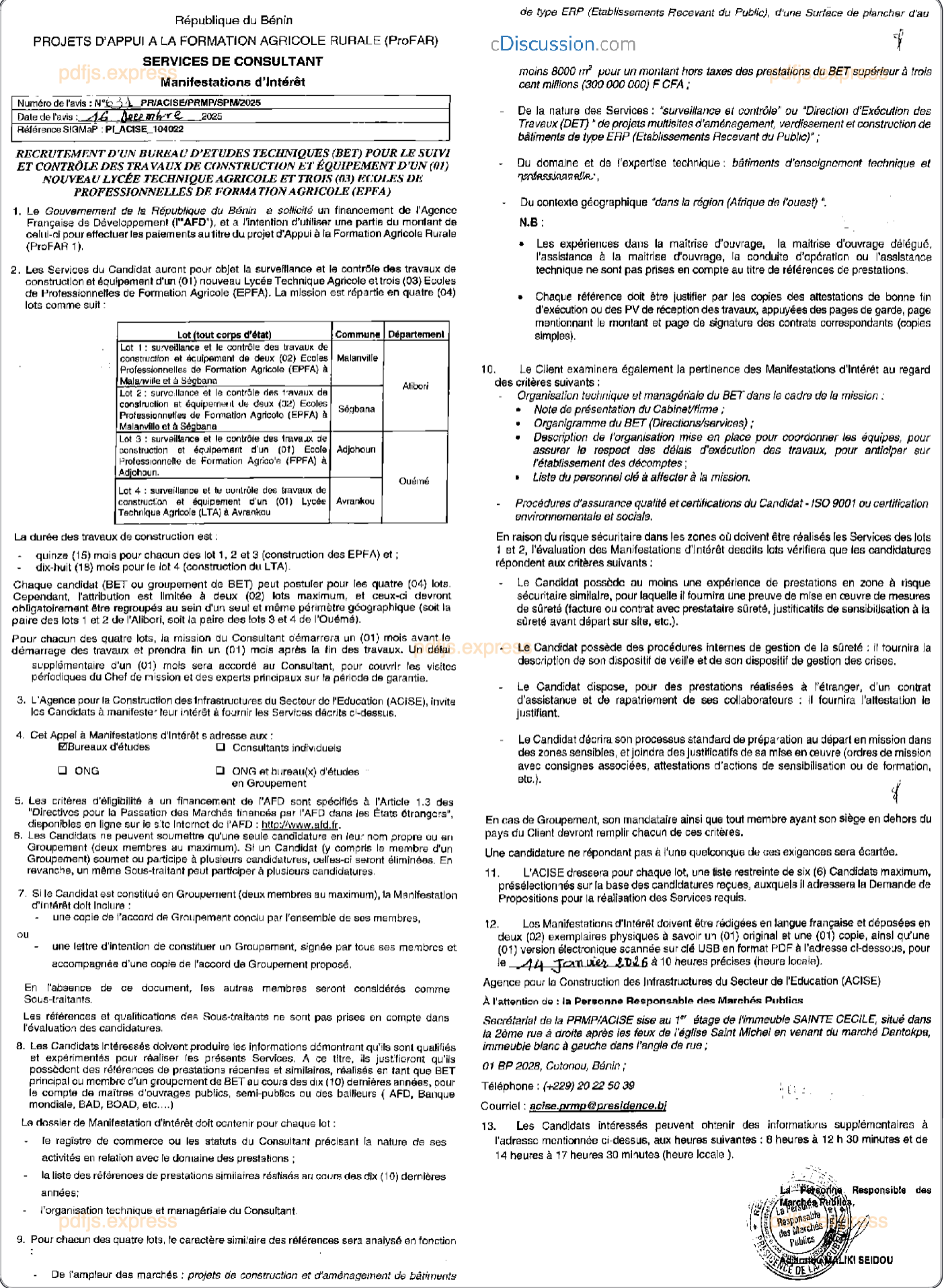 Recrutement d'un bureau d'études techniques(BET) pour le suivi et contrôle des travaux de construction et équipements d'un(01) nouveau lycée technique agricole et trois (03) écoles de professionnelles de formation agricole(EPFA)