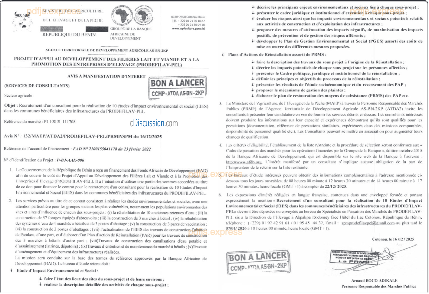 Recrutement d'un consultant pour la réalisation de 10 études d'impact environnemental et social (EIES) dans les communes bénéficiaires des infrastructures du PRODEFILAV-PEI