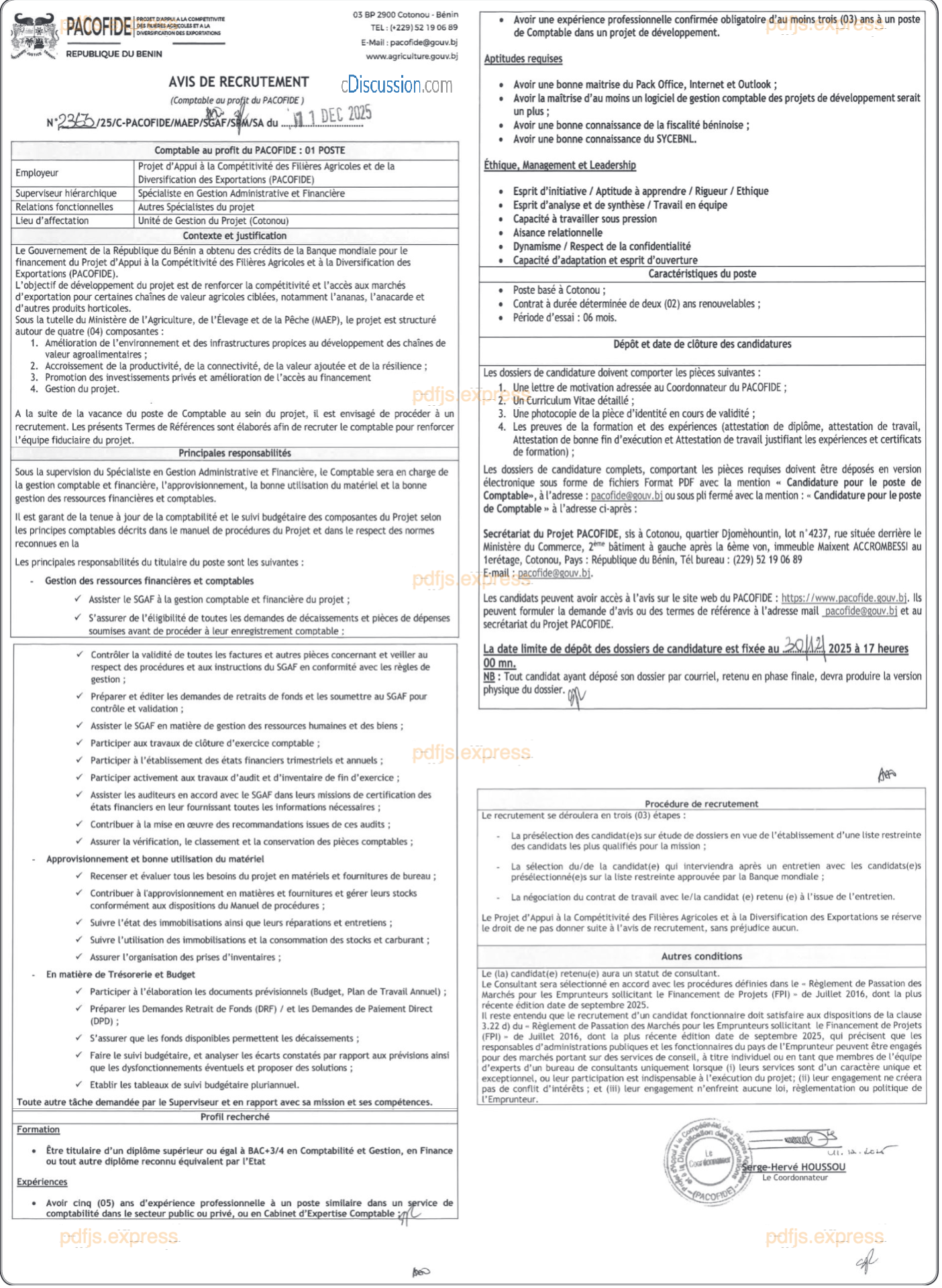 Projet d'Appui à la Compétitivité des Filières Agricoles et de la Diversification des Exportations( PACOFIDE)