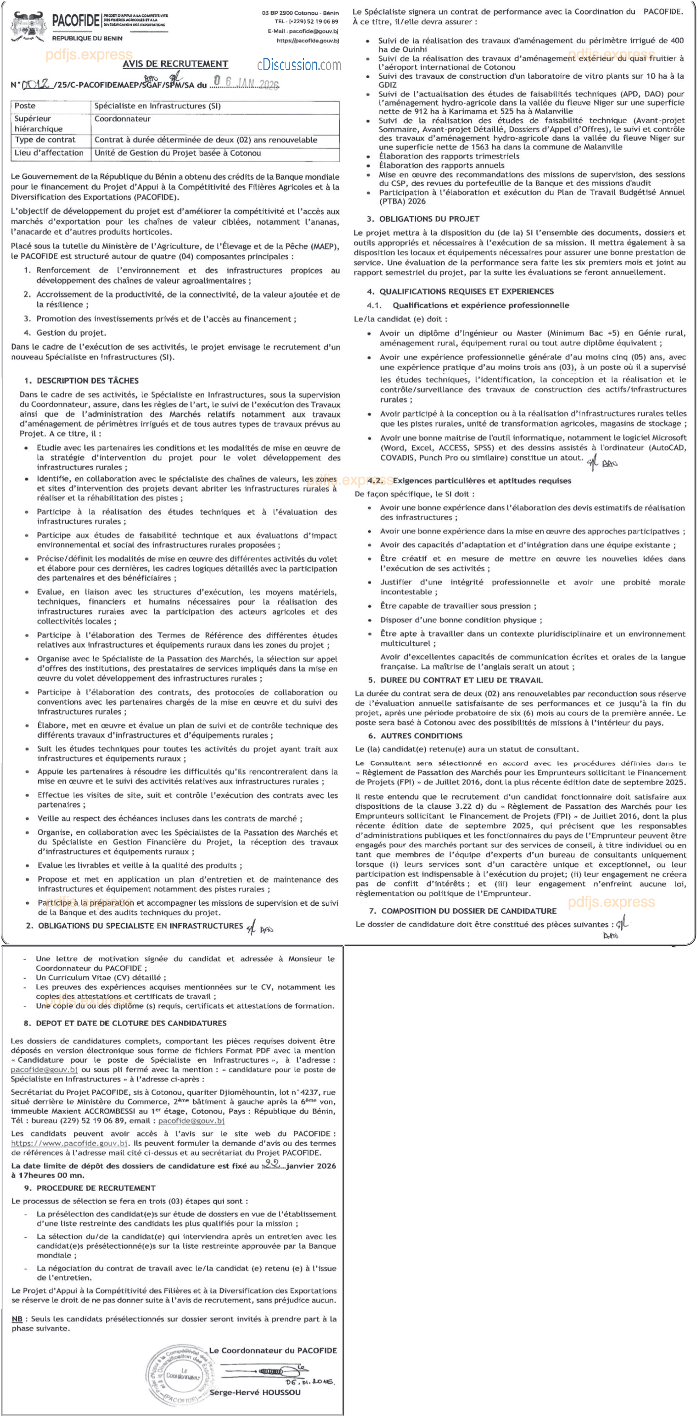 Avis de recrutement d'un Spécialiste en Infrastructures (SI)