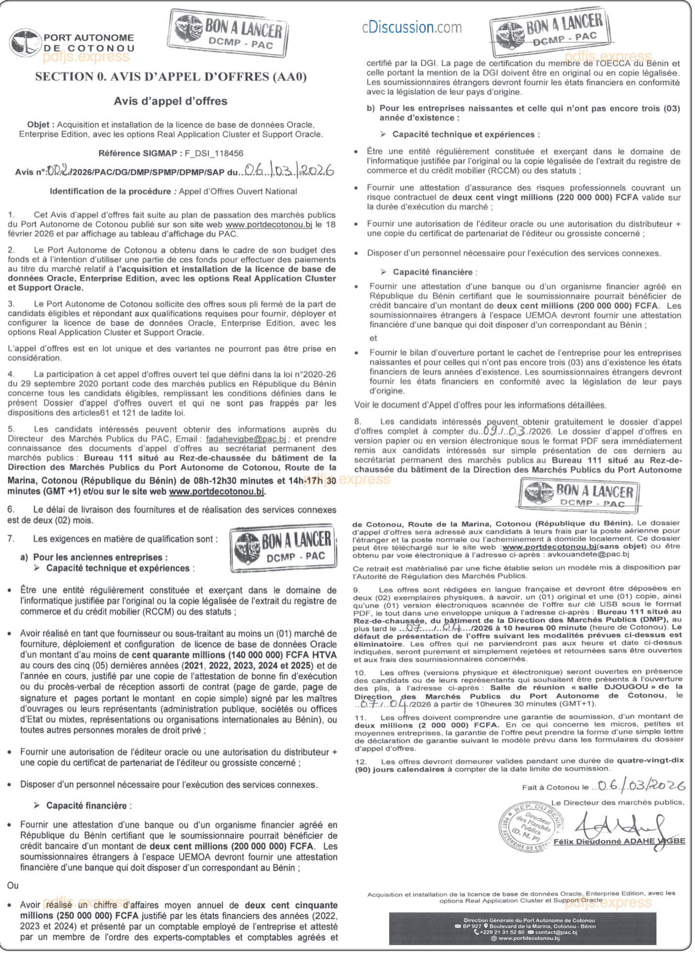 ACQUISITION ET INSTALLATION DE LA LICENCE DE BASE DE DONNEES ORACLE, ENTREPRISE EDITION, AVEC LES OPTIONS REAL APPLICATION CLUSTER ET SUPPORT ORACLE