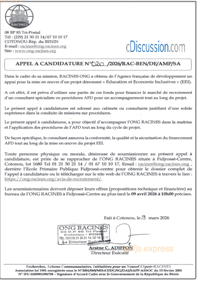 RECRUTEMENT D'UN CONSULTANT SPECIALISTE EN PROCEDURES AFD POUR UN ACCOMPAGNEMENT TOUT AU LONG DU PROJET
