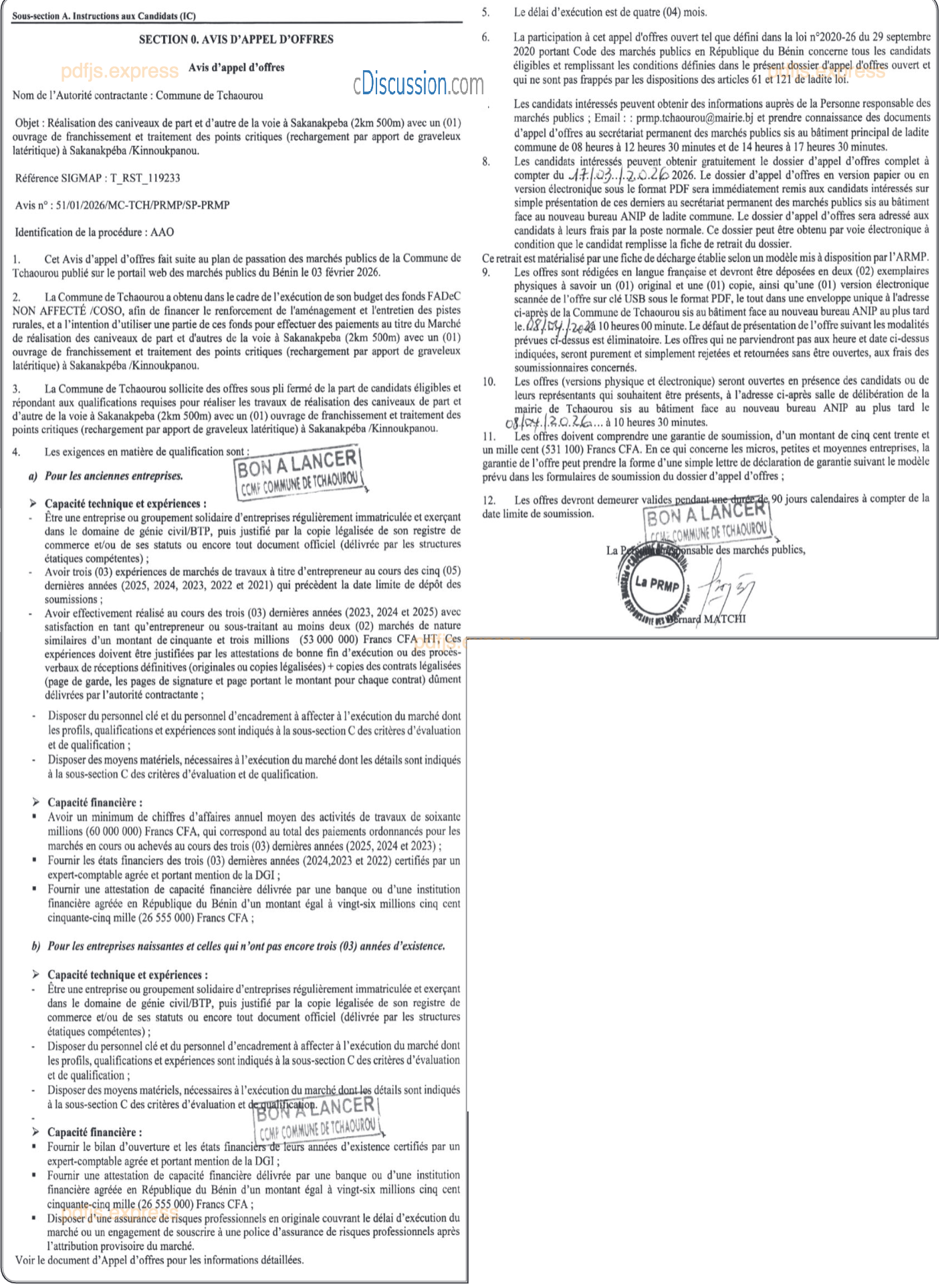 REALISATION DES CANIVEAUX DE PART ET D'AUTRE DE LA VOIE A SAKANAKPEBA(2KM500) AVEC UN(01) OUVRAGE DE FRANCHISSEMENT ET TRAITEMENT DES POINTS CRITIQUES(RECHARGEMENT PAR RAPPORT DE GRAVELEUX LATERITIQUE) A SAKANAKPEBA/ KINNOUKPANOU