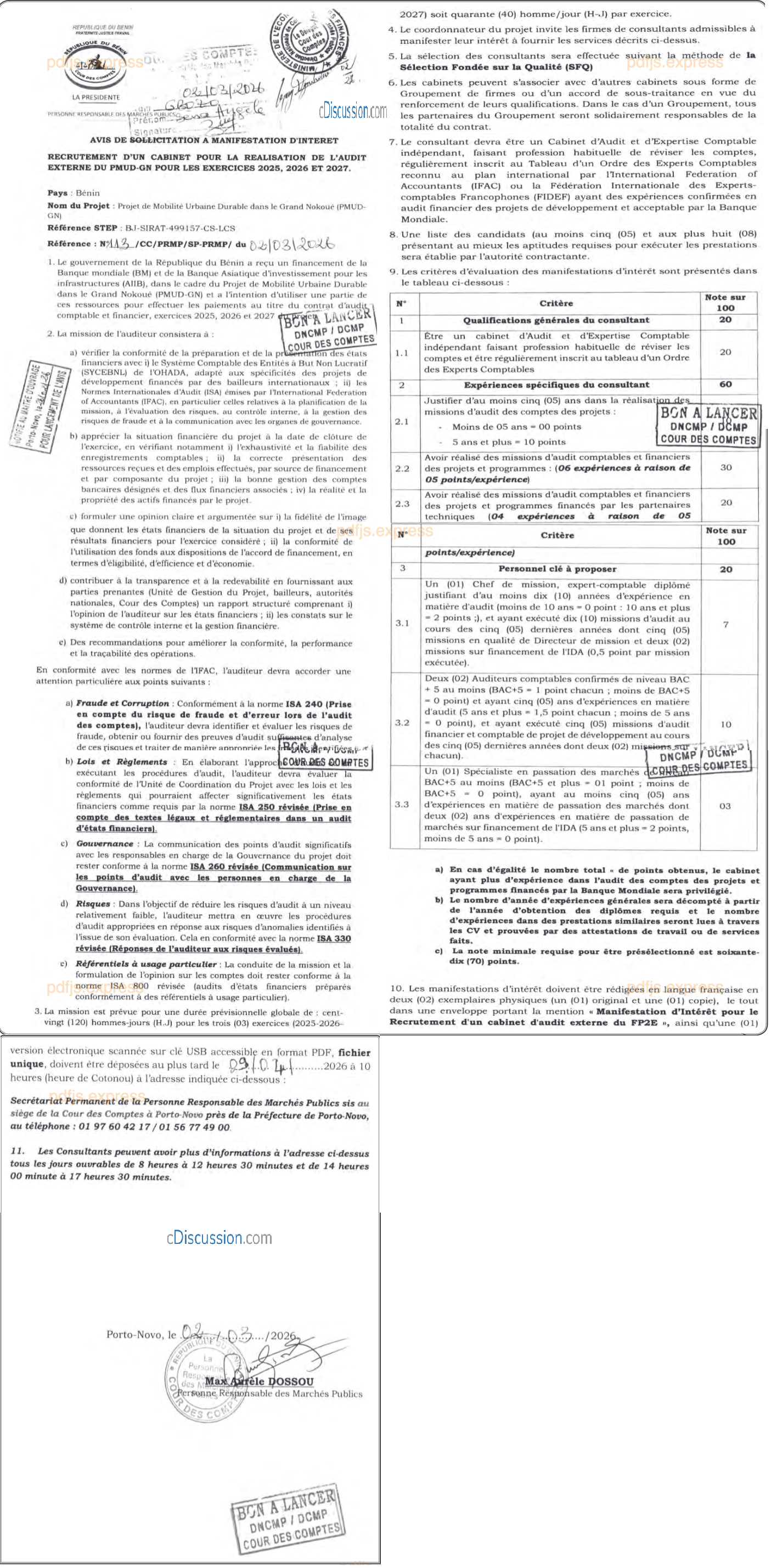 AVIS DE SOLLICITATION A MANIFESTATION D'INTERET: RECRUTEMENT D'UN CABINET POUR LA REALISATION DE l'AUDIT EXTERNE DU PMUD-GN POUR LES EXERCICES